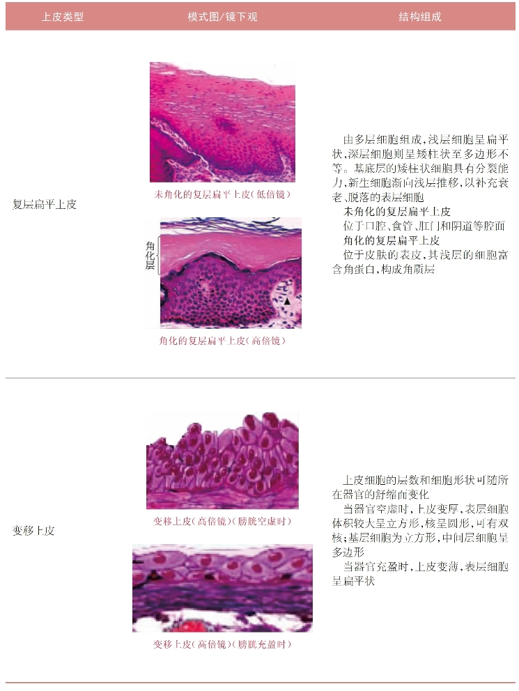 1.被覆上皮的类型和主要分布(表3-1-1)