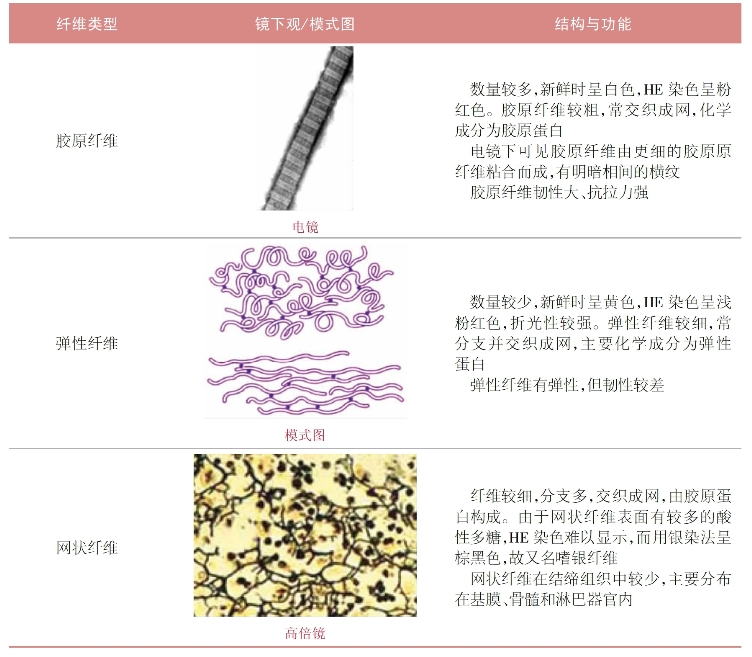 表3-2-2 疏松结缔组织3种纤维的结构与功能