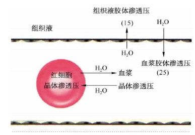 图4-2-1 血浆晶体渗透压与胶体渗透压作用示意图