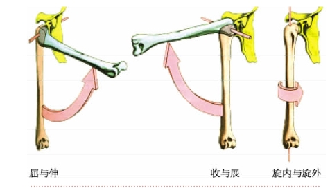 3)旋转:骨的前面转向内侧的动作称旋内,反之为旋外。在前臂,手背转向前方的运动称旋前,反之为旋后。