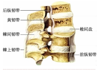 (2)韧带:连结椎骨的韧带有长、短两类。有加强椎骨和椎间盘之间连接的作用,并能限制脊柱的过度运动。
