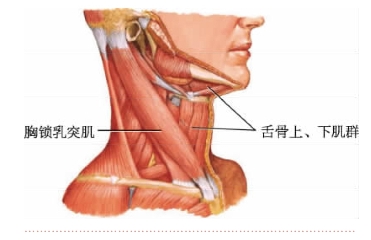 颈肌分为颈浅肌(图5-2-8)和颈深肌(图5-2-9)。颈浅肌主要有胸锁乳突肌和舌骨上、下肌群。颈深肌包括前斜角肌、中斜角肌和后斜角肌。