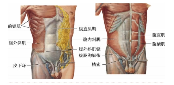 腹肌参与组成腹腔的前壁、侧壁和后壁,分为前外侧群和后群。
