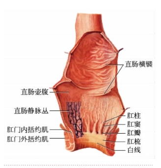 肛瓣与肛柱下端共同连成锯齿状的环形线称齿状线,齿状线以上肛管内面为黏膜,以下为皮肤。肛管的黏膜下和皮下有丰富的静脉丛,病理情况下静脉丛曲张向肛管腔内突起称痔。发生在齿状线以上的痔称内痔,齿状线以下的为外痔,也有跨越于齿状线上、下的称混合痔。