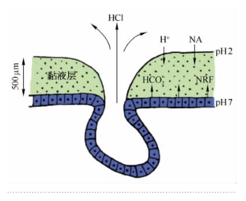 图6-4-3 黏液-碳酸氢盐屏障模式图