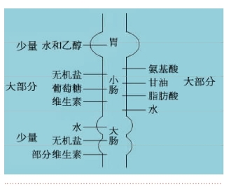 图6-4-7 消化道各部位吸收物质的分布