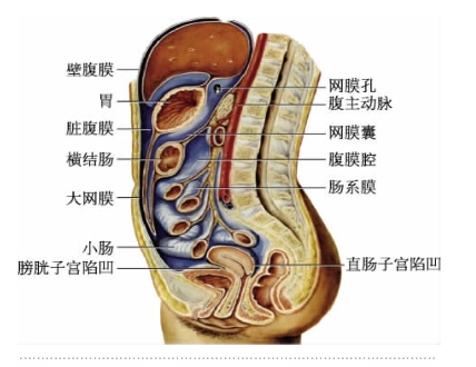 图6-5-1 腹膜腔矢状切面模式图(女性)