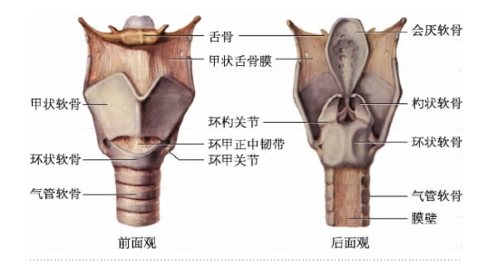 喉既是呼吸的管道,又是发音的器官。喉位于颈前正中部,成年人的喉在第3~6颈椎。喉向上借喉口与喉咽部相通,向下以环状软骨气管韧带连接气管,可随吞咽或发音而上下移动。