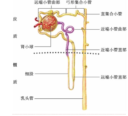 (2)肾小管:由近端小管、细段和远端小管组成。