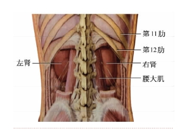 图8-1-3 肾与椎骨、肋骨的位置关系