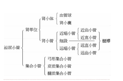 1.肾单位 肾单位是肾形成尿液的结构和功能单位,由肾小体和肾小管组成。每一肾脏约有100万个以上肾单位。