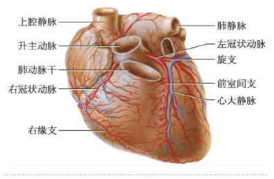 心的血液供应来自主动脉根部发出的左、右冠状动脉,心本身的循环称冠脉循环或冠状循环。其分支都是按营养部位命名的(图10-1-10、图10-1-11)。
