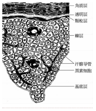 图11-4-2 表皮分层和细胞结构模式图