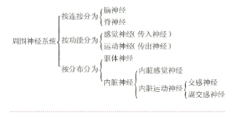 周围神经系统按与中枢连接部位,分为脑神经和脊神经,分别与脑和脊髓相连。按功能可分为感觉神经和运动神经。感觉神经将来自感受器的神经冲动传向中枢神经系统,又称传入神经;运动神经将神经冲动自中枢神经系统传向周围效应器,又称传出神经。按分布对象可分为躯体神经和内脏神经。躯体神经分布于皮肤、骨、关节和骨骼肌;内脏神经分布于内脏、心血管、平滑肌和腺体。躯体神经和内脏神经均含有传入(感觉)纤维和传出(运动)纤维。内脏运动神经支配不受人主观意志控制的心肌、平滑肌和腺体的活动,故又称自主神经。依其功能的不同,它们又分为交感神经和副交感神经两部分(图12-2-1)。