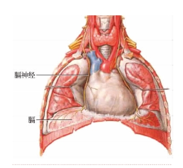 膈神经损伤可致同侧半膈肌瘫痪、呼吸减弱。膈神经受刺激时可产生呃逆,肝胆疾病发作时常出现右肩部牵涉痛。
