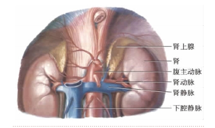 肾上腺位于左、右肾的内上方,是人体重要的内分泌腺,左右各一,左肾上腺近似半月形,右肾上腺呈三角形(图13-5-1),与肾共同被包裹在肾筋膜内。肾上腺实质分为皮质和髓质两部分。