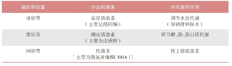 肾上腺皮质分泌的皮质激素分为3类,即盐皮质激素、糖皮质激素和性激素。各类皮质激素是由肾上腺皮质不同层上皮细胞所分泌的(表13-5-1)。