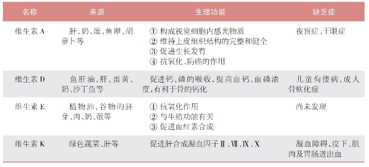 表15-1-4 脂溶性维生素的名称、生理功能及缺乏症