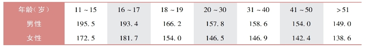 表15-6-2 我国正常人BMR的平均值[kJ/(m2·h)]