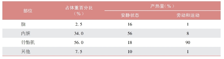 表15-6-3 几种组织在安静和活动情况下的产热百分比