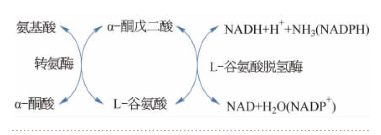 上述反应是可逆的,是体内α-酮酸生成非必需氨基酸的方式之一。组织中存在多种氨基酸氧化酶,其中以L-谷氨酸脱氢酶最为重要。此酶在体内普遍存在,活性强,特异性高。