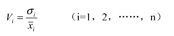 式中:Vi是第i项指标的变异系数、也称为标准差系数;σi是第i项指标的标准差;是第i项指标的平均数。