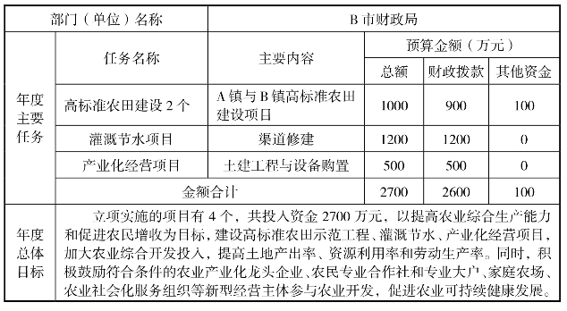 B市农业综合开发项目绩效目标申报表详见表1-1: