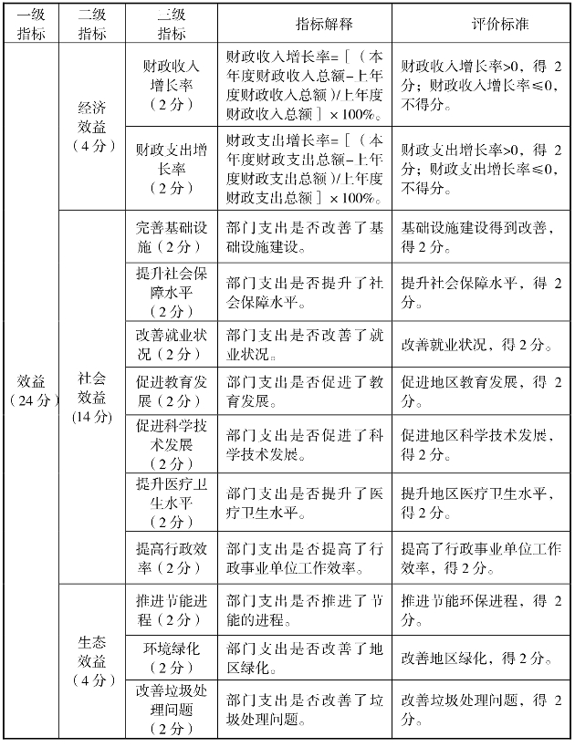 表3-7 B市财政预算整体支出绩效评价指标体系