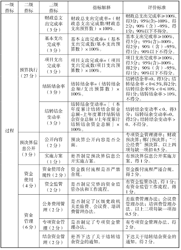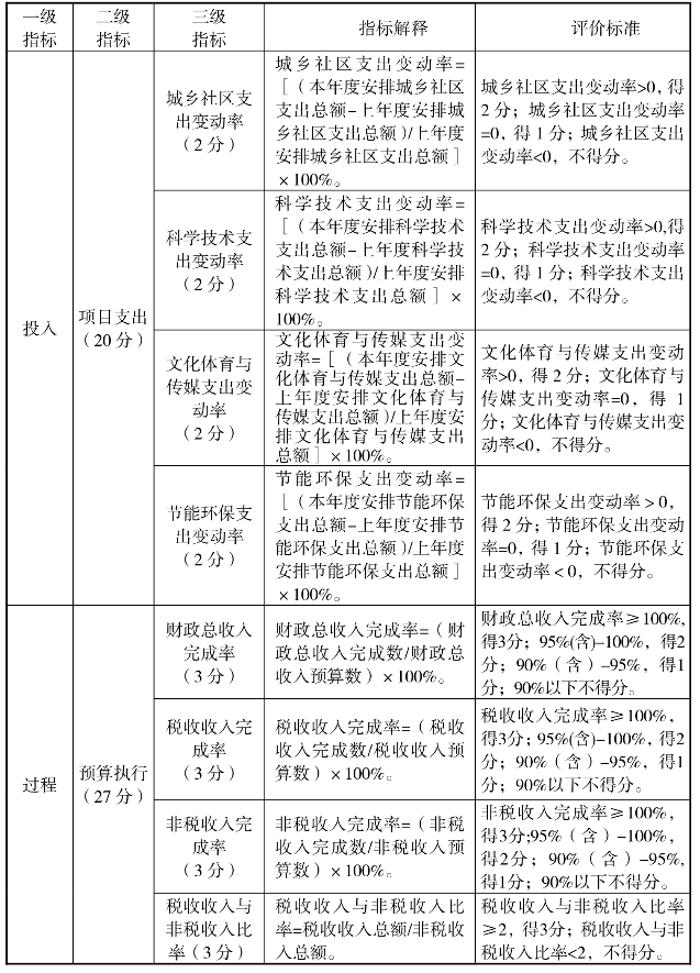 (二)预算执行的绩效评价指标