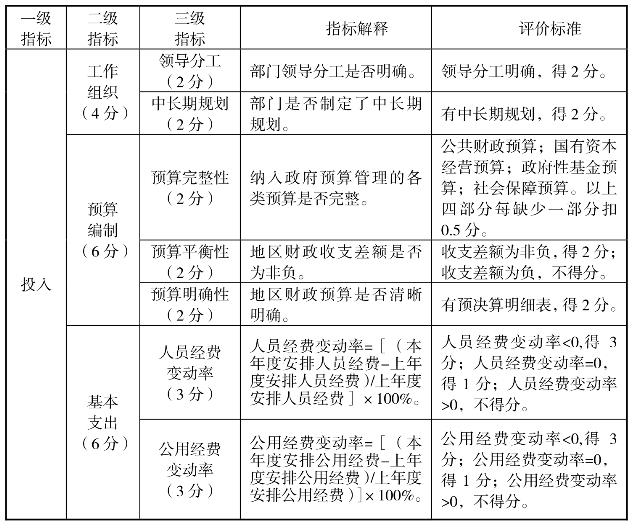 投入评价主要是关于预算编制评价和专业安排的评价。