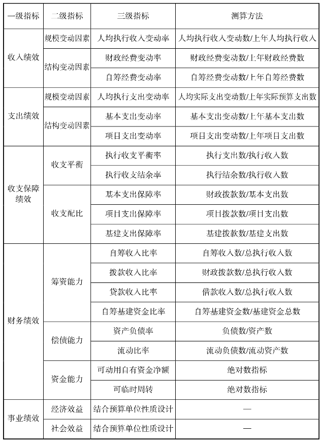 (三)预算决算绩效评价指标