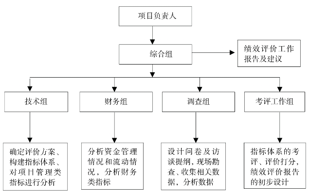 在承接项目,确定评价对象后,评价机构联合该项目有关部门相关人员成立评价工作小组,负责整个评价工作的组织和指导,开展评价工作,制定或审定评价方案、审核评价报告等。