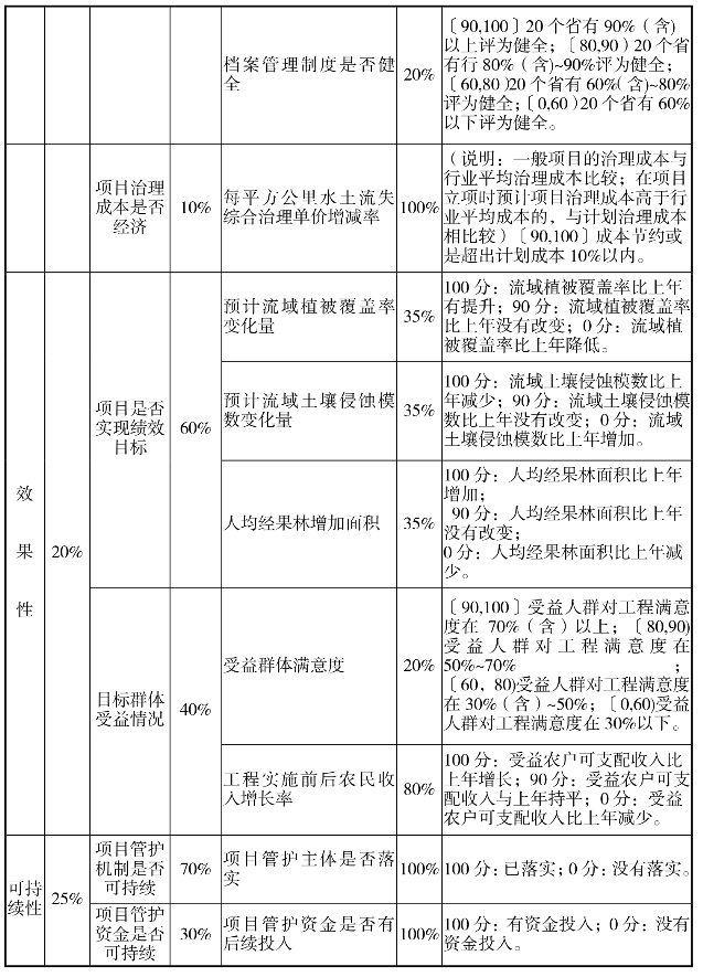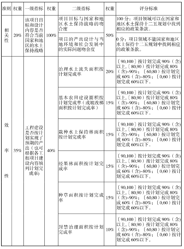 水土保持补助资金绩效评价指标体系