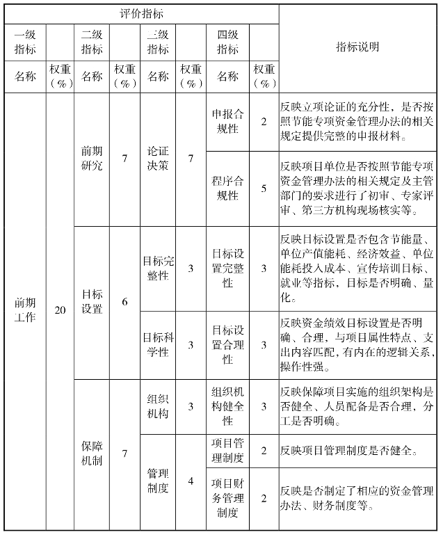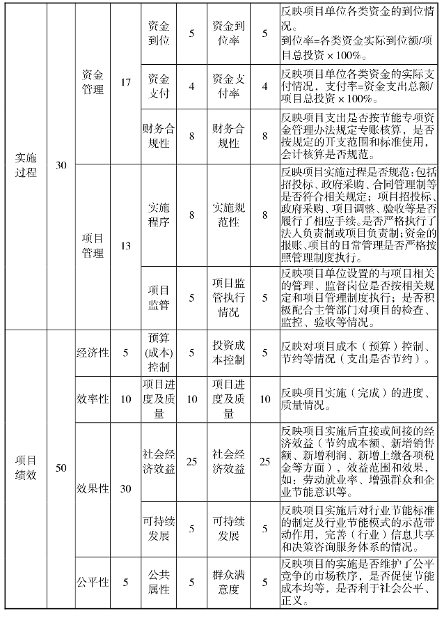 节能专项资金绩效评价指标体系
