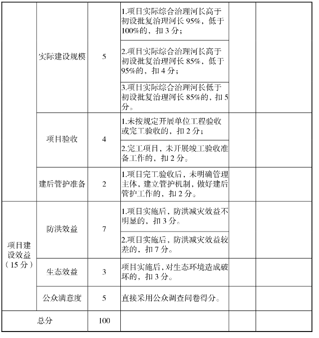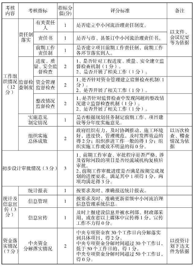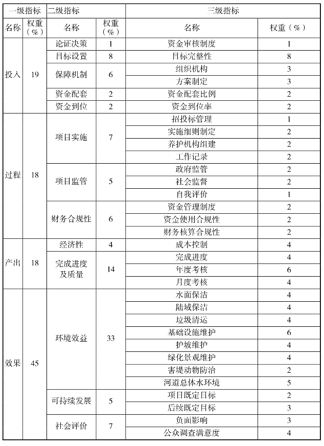 地方中小河流治理项目绩效评价指标体系