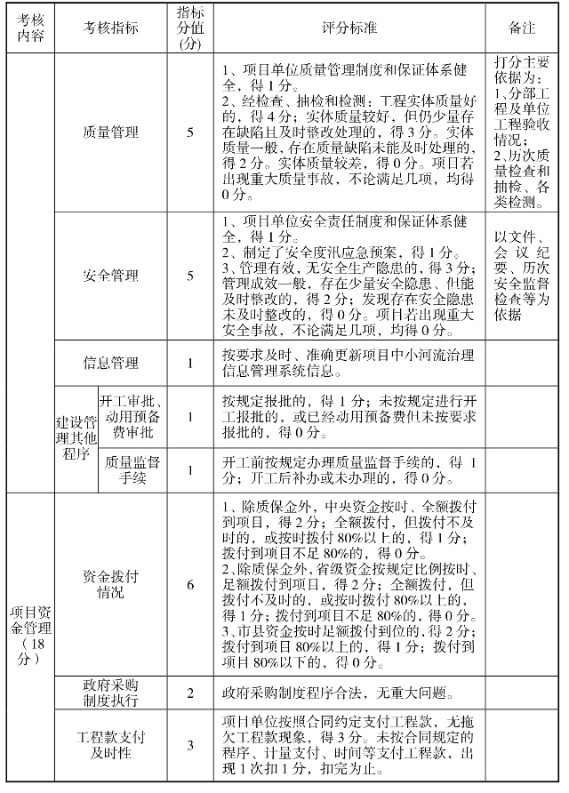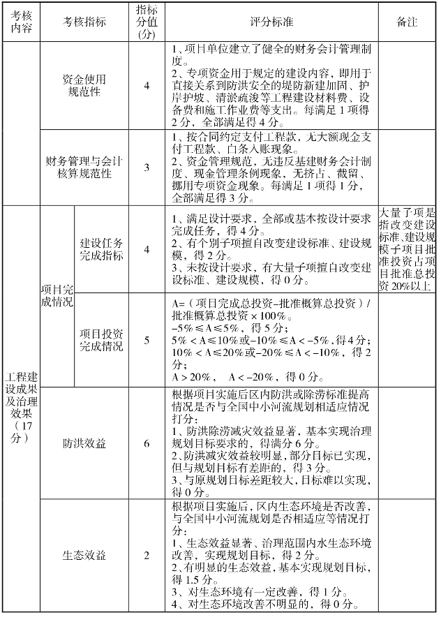 中小河流治理项目绩效评价指标体系