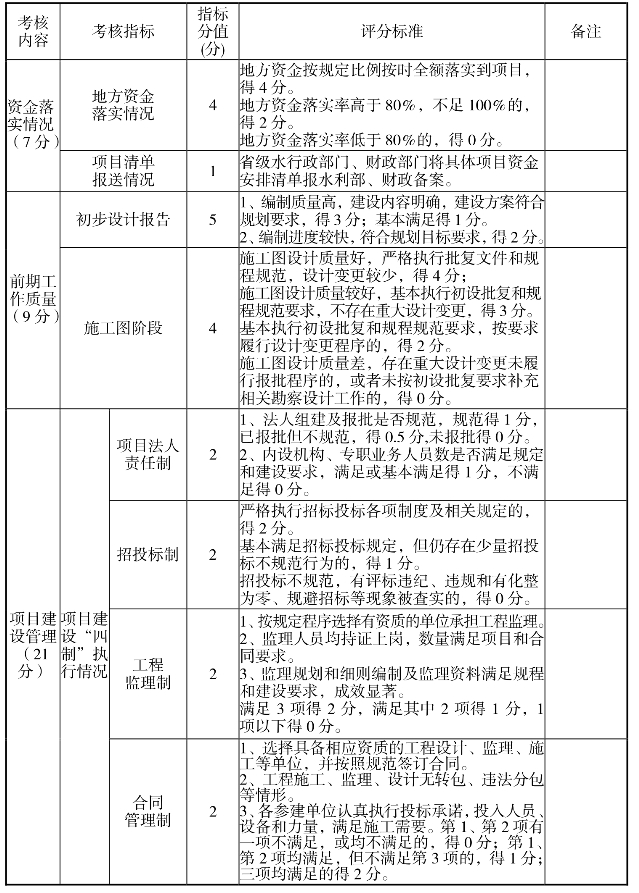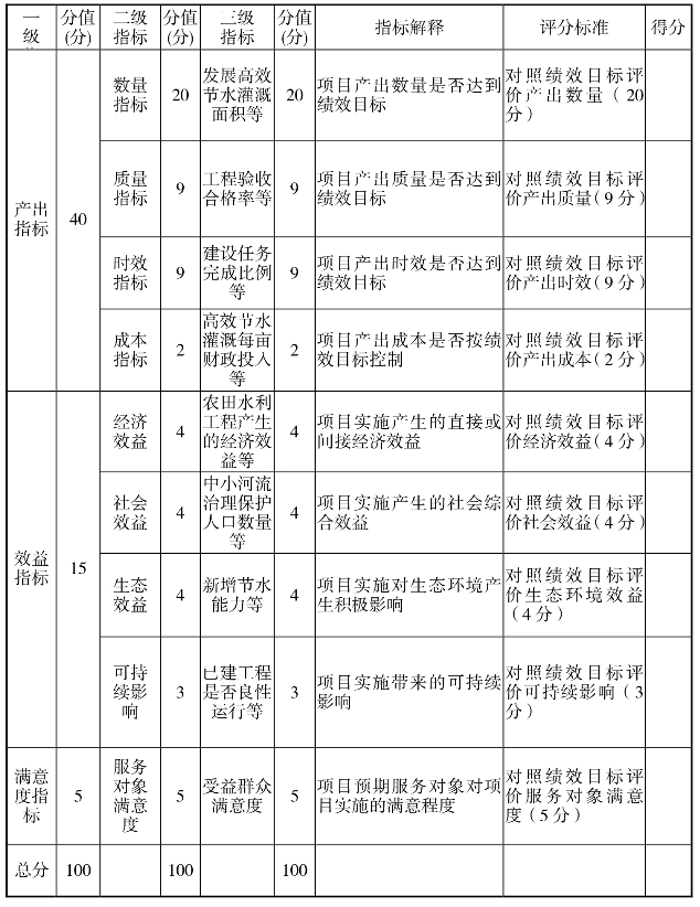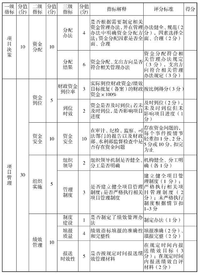 中央财政水利发展资金绩效评价指标体系