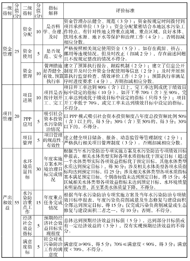 水污染防治专项资金绩效评价指标体系