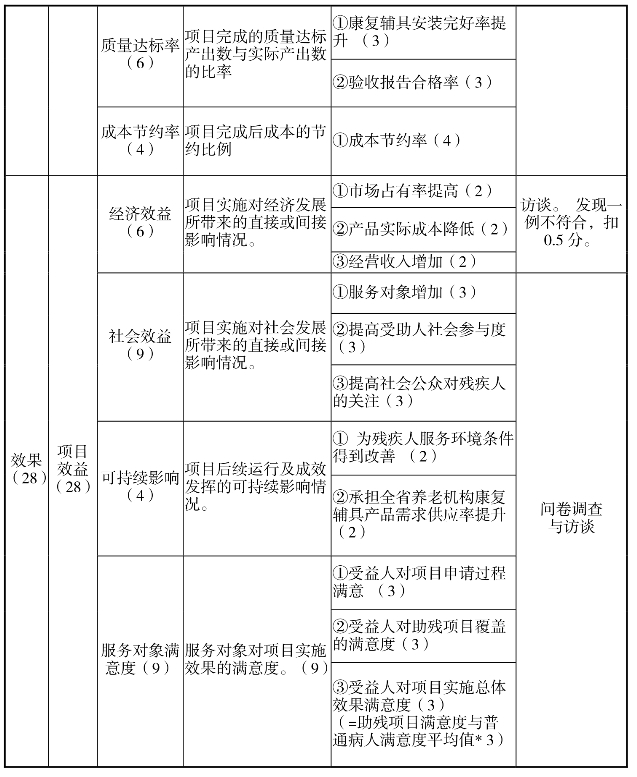 假肢科研、辅具更新改造和“爱心助残行动”项目绩效评价指标体系