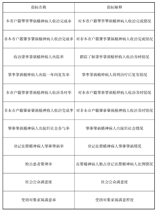 肇事肇祸精神病人治疗补贴项目绩效前评价指标体系