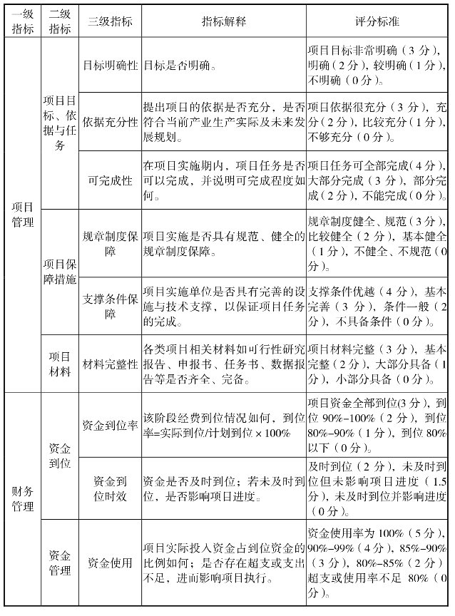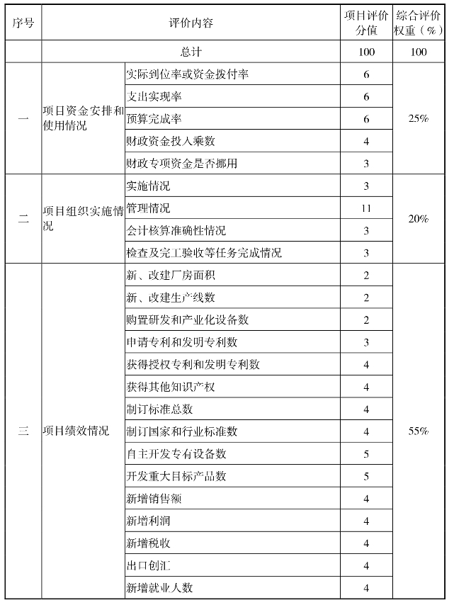 科技创新与成果转化专项引导资金绩效评价指标体系