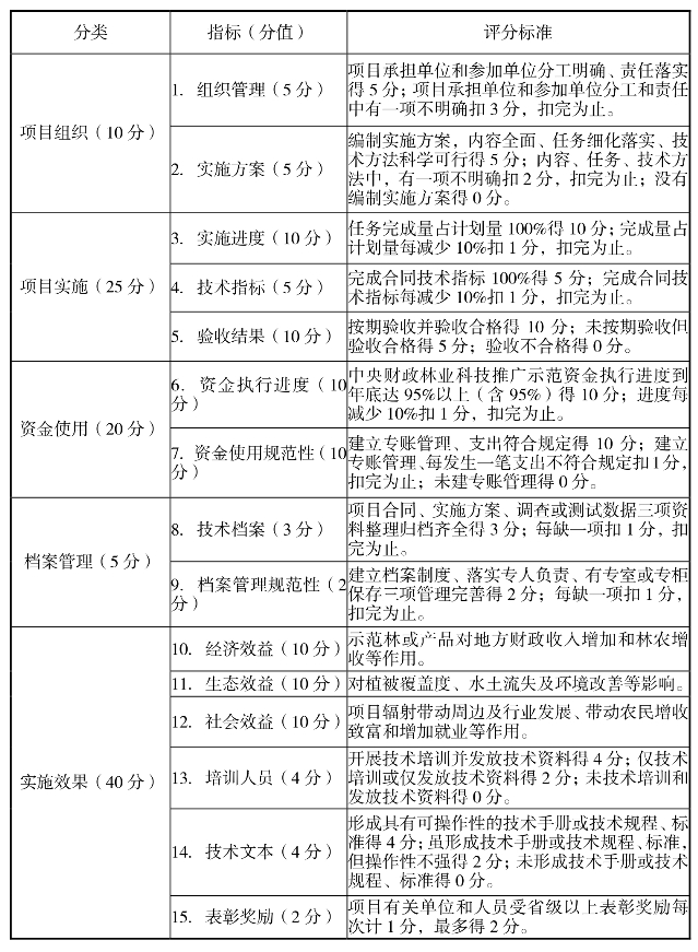 中央财政林业科技推广示范资金项目绩效评价指标体系