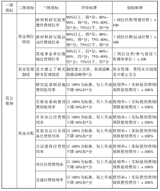 新材料研究院项目绩效评价指标体系