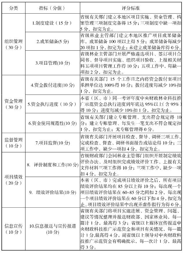 中央财政林业科技推广示范资金省级管理工作绩效评价指标体系