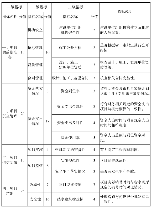 石峡永久防洪堤1号工程绩效评价指标体系