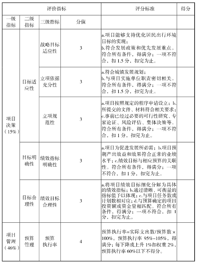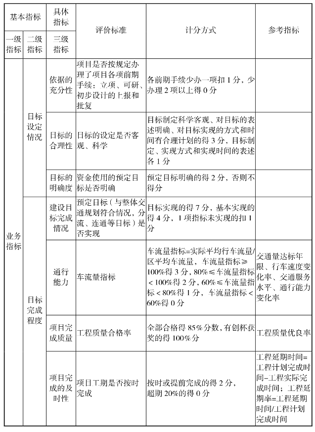 石桥路工程项目绩效评价指标体系