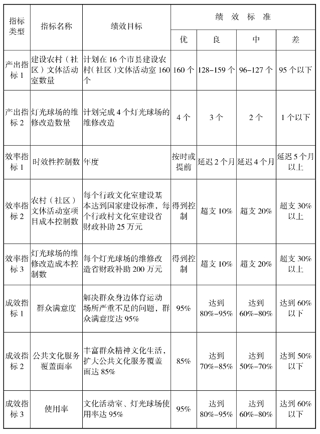 行政村文体活动室建设项目和“雪炭工程”项目绩效评价指标体系