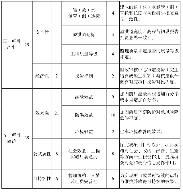 小型水库除险加固专项资金绩效评价指标体系