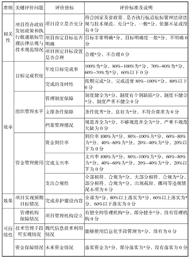 航道、航标维护建设项目绩效评价指标体系