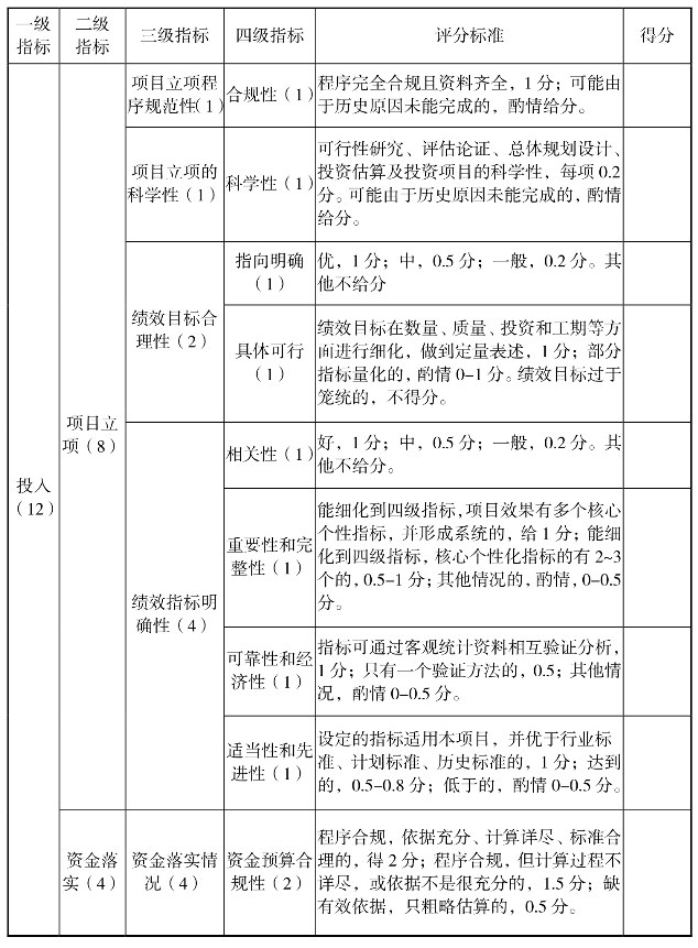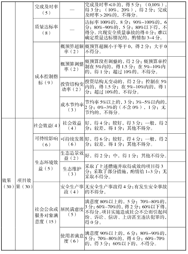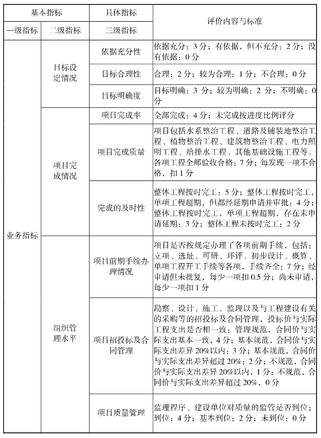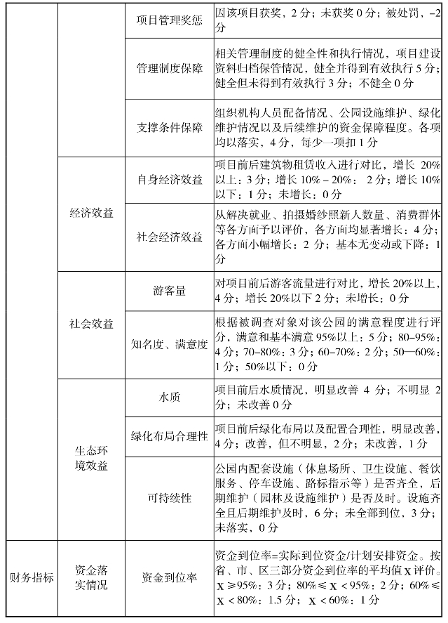 公园整治工程绩效评价指标体系